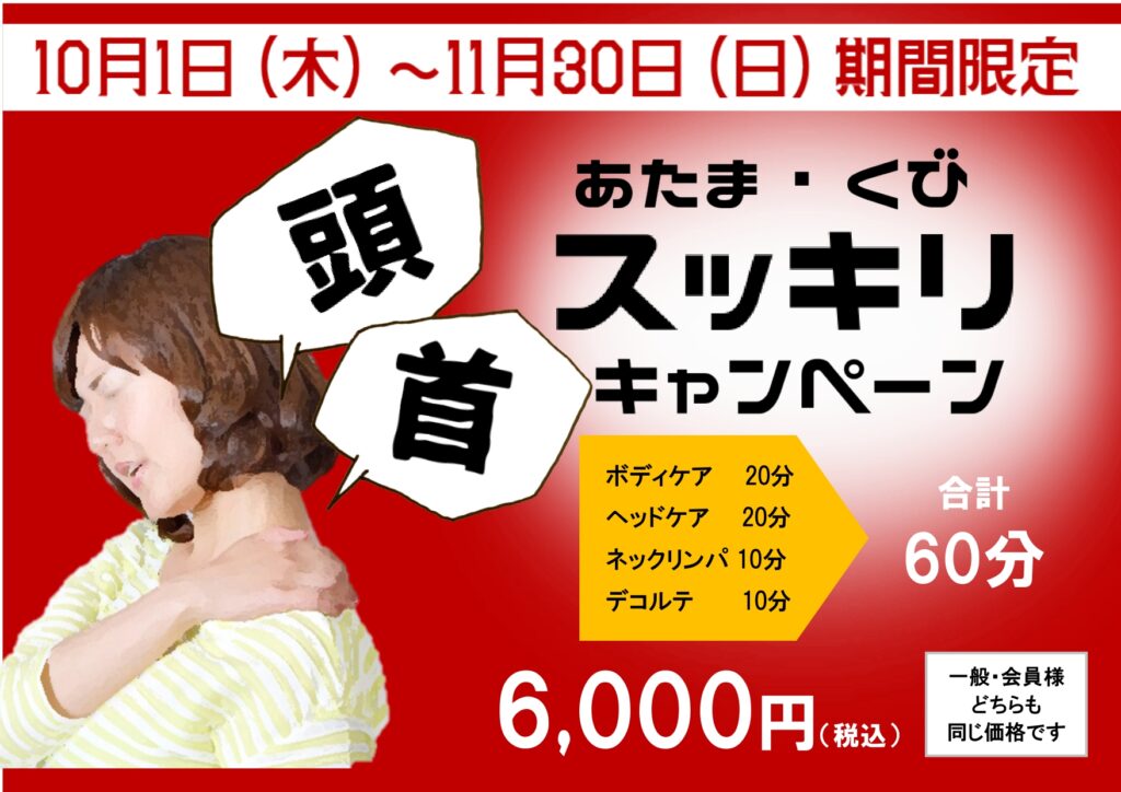 10/1から開始!限定メニュー 10/1より11/30まで限定メニューを開始します! 頭がなんだか重いな、首のコリが取れないなど、上半身に特化したコースです。 ご予約はこちらの電話番号から➡076282188 2025年10月02日 17:23